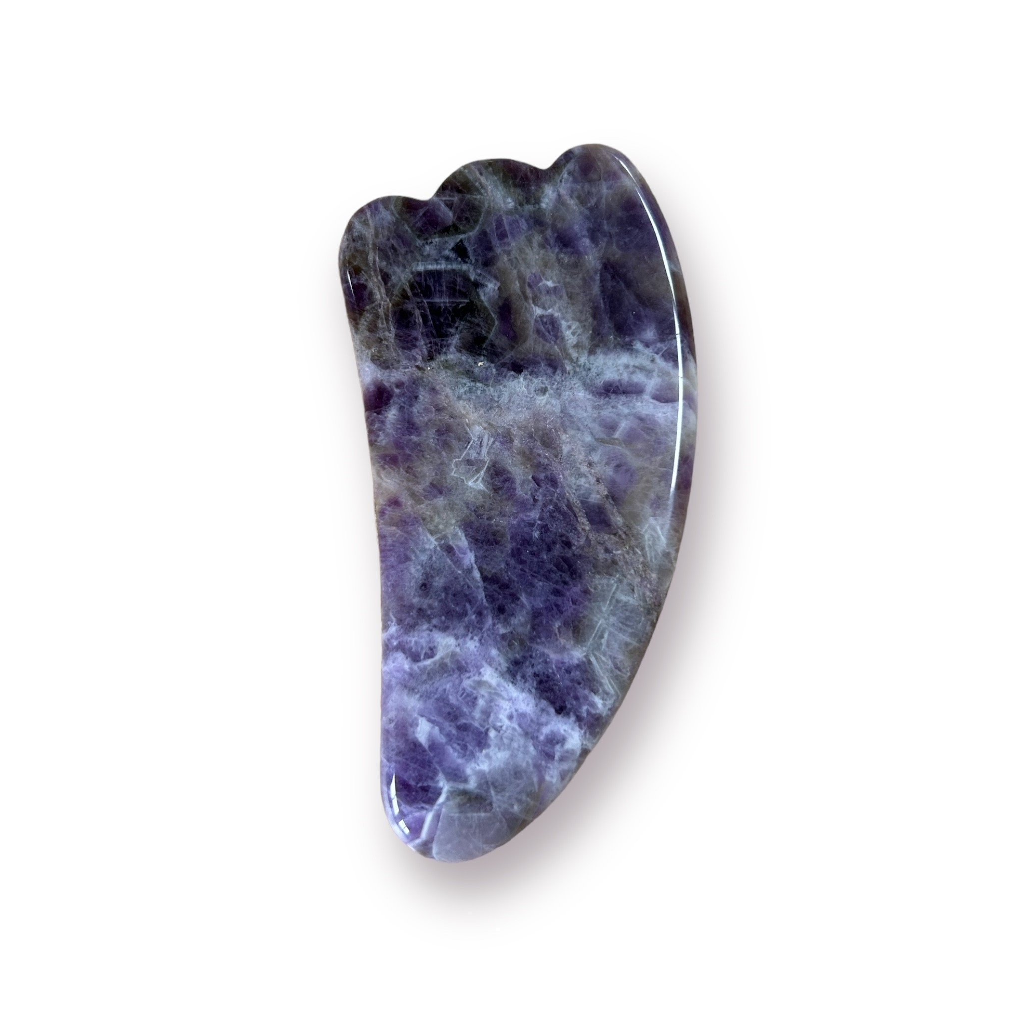 De amethist Guasha schraper combineert de helende kracht van amethist met de technieken van guasha om zowel fysieke als spirituele gezondheid te bevorderen. Deze schraper verlicht hoofdpijn, ondersteunt de spijsvertering en kalmeert het zenuwstelsel, terwijl het ook emotionele blokkades opheft en diepgaand zelfinzicht biedt. Amethist bevordert de concentratie, versterkt de intuïtie en biedt spirituele bescherming, wat het ideaal maakt voor meditatie en dagelijkse ontspanning. Gebruik deze schraper om uw geest te zuiveren, stress te verminderen en een harmonieus evenwicht te vinden.
